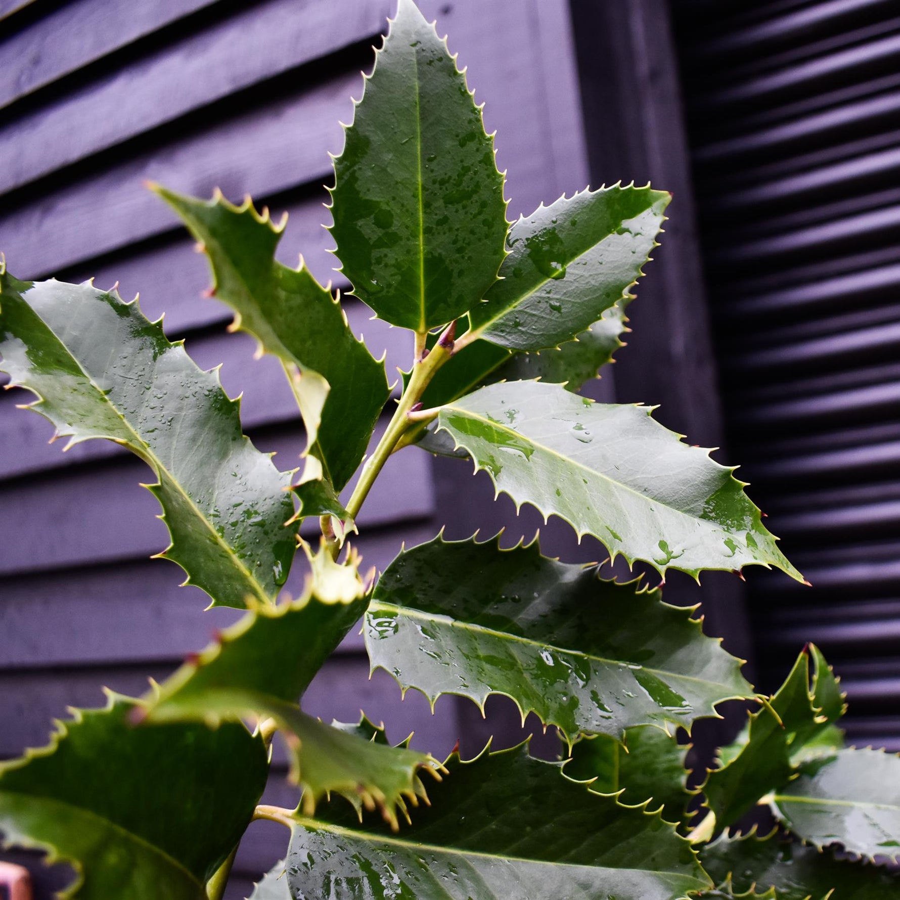 Being evergreen, it maintains interest throughout all seasons and offers shelter for birds and beneficial wildlife. In winter, female plants may carry bright red berries if a suitable male pollinator is nearby, adding valuable seasonal colour. Ilex castaneifolia prefers a sheltered position in well-drained, fertile soil and performs best in full sun to partial shade. It is tolerant of urban conditions and light pollution, making it suitable for town gardens as well as rural settings. With minimal pruning required, it is a low-maintenance, long-lived tree that brings lasting form, colour, and character to both traditional and contemporary garden designs.