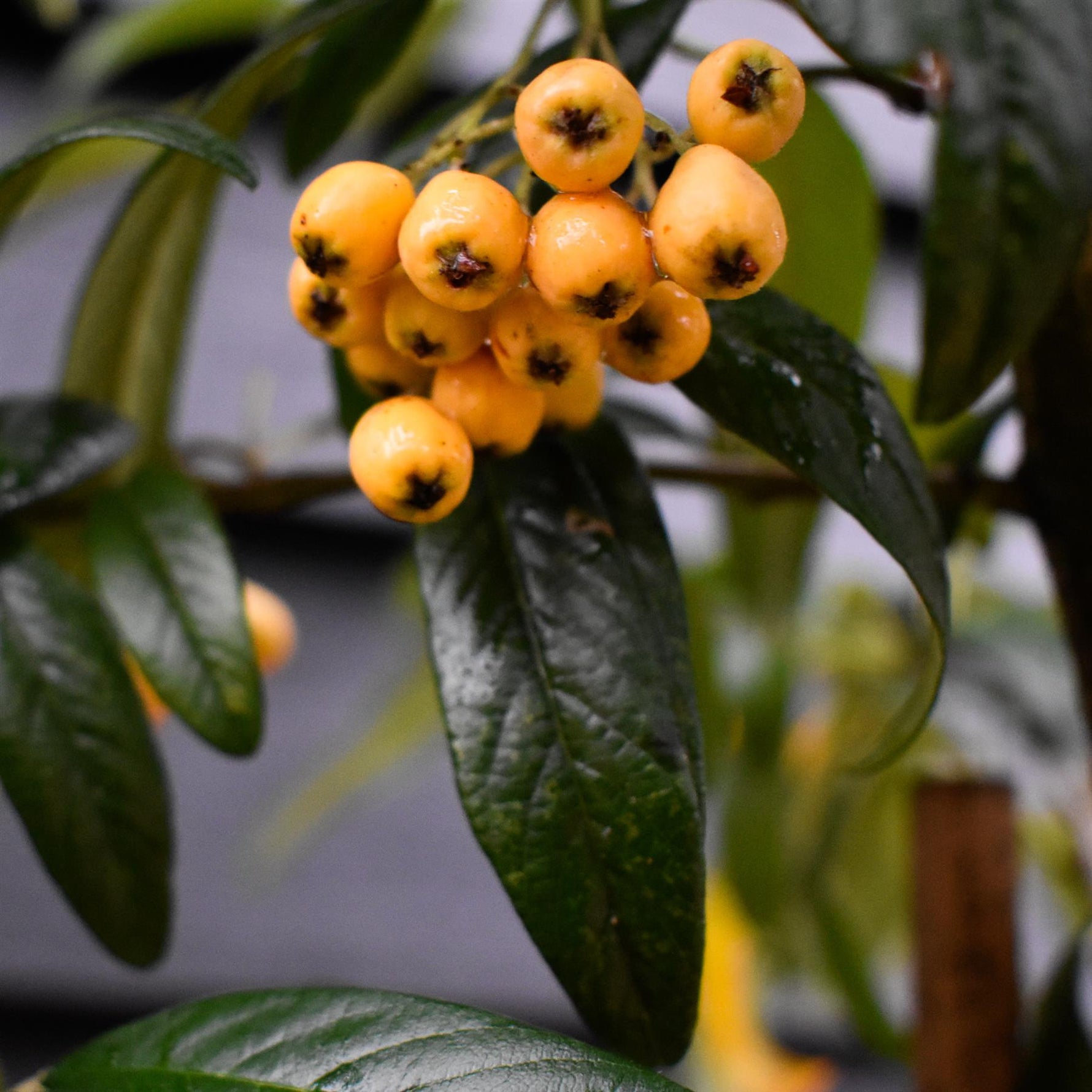 Cotoneaster 'Rothschildianus' is a medium-sized, vigorous, semi-evergreen shrub or small, shrubby tree with arching branches. Its long, narrow, bright green leaves hold all year round in mild winters. Tiny, white, fragrant flowers bloom in summer and are followed by pendant clusters of golden yellow berries in autumn and winter. The berries provide food for birds during the winter. Cotoneaster 'Rothschildianus' grows well in any kind of soil, as long as it is well-drained, but does best in neutral to alkaline. It doesn’t like marshy and waterlogged soils. It prefers full sun, but tolerates partial shade. Low maintenance and easy to grow. Once established, tolerant to cold and drought. In colder areas, it needs to be sheltered from harsh winds. Cotoneaster 'Rothschildianus' is an interesting plant, great for banks and slopes, flower beds and borders, informal hedges and screens. Perfect for informal, cottage, and wildlife gardens. Suitable for growing in pots and containers.