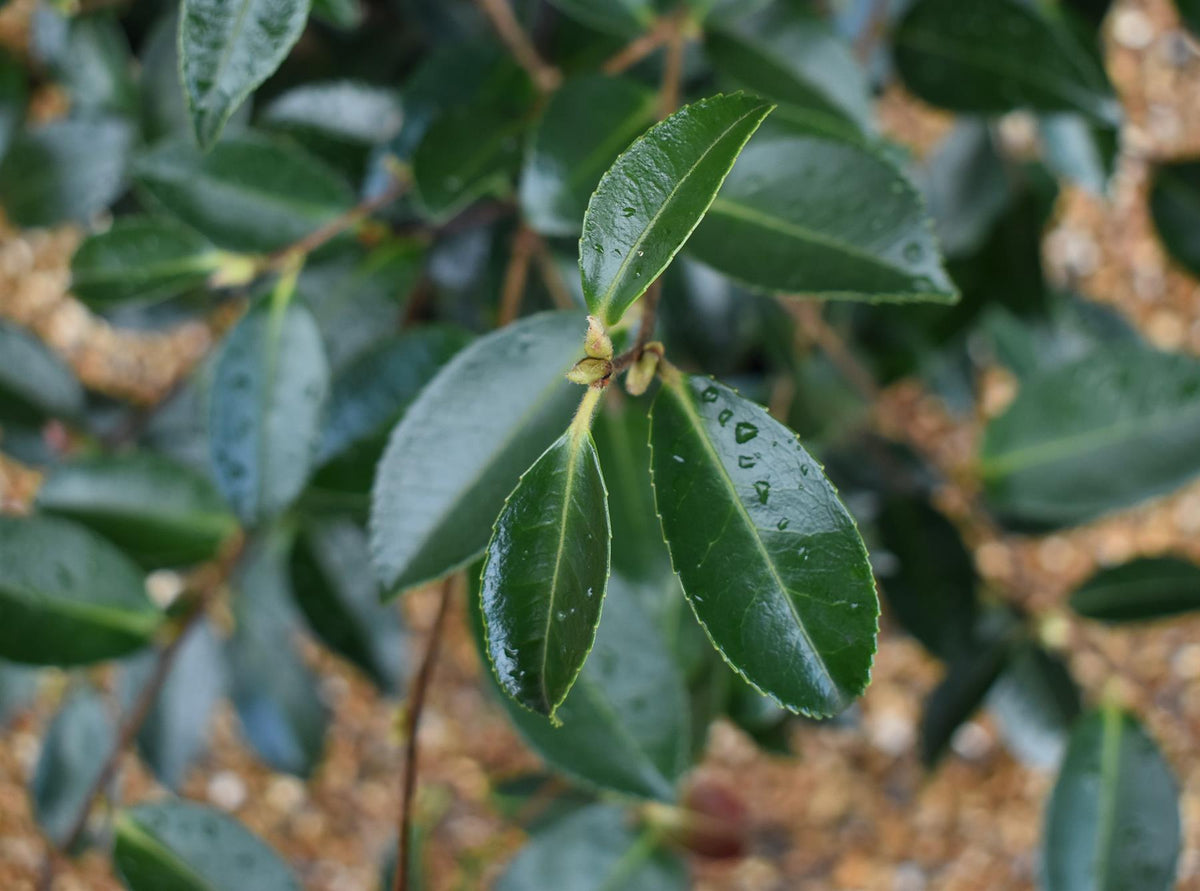 The glossy, dark green foliage provides a striking contrast to the luminous flowers, making it a beautiful addition to gardens throughout the colder months. As a hybrid developed for increased cold tolerance, Snow Flurry thrives in sheltered positions with partial shade and well-drained, slightly acidic soil. It is an excellent choice for borders, woodland gardens, or as an ornamental focal point in a courtyard or patio setting.