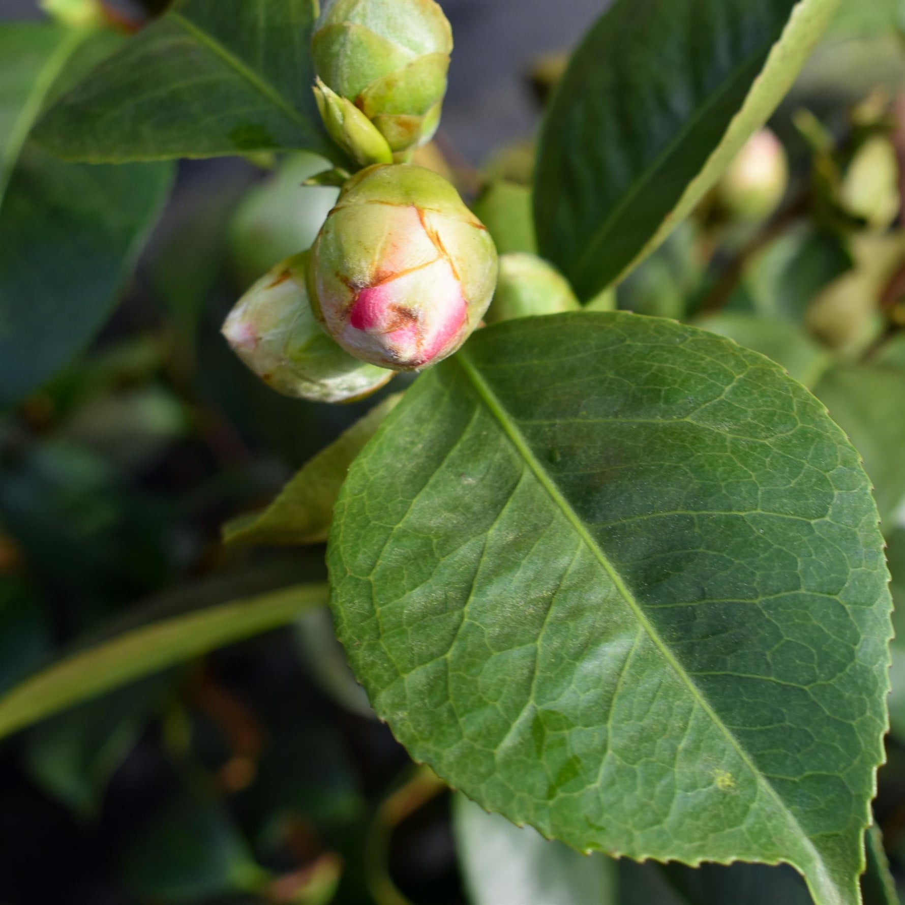 Camellia x williamsii 'Debbie' is a delightful and sought-after evergreen shrub renowned for its exquisite blooms and elegant foliage. This camellia cultivar is a hybrid between Camellia saluenensis and Camellia japonica, resulting in a plant that offers the best of both parents. 'Debbie' typically reaches a height of 6 to 10 feet (1.8 to 3 meters) and forms a compact, upright bush with glossy, deep green leaves that provide year-round interest in the garden.