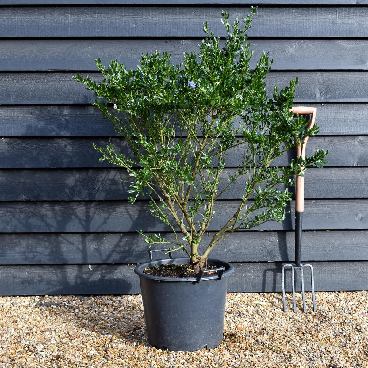 The Ceanothus 'Victoria' is a highly suitable shrub for gardens, especially in temperate or coastal regions. Known for its vibrant, deep blue flowers that bloom profusely in late spring to early summer, this evergreen offers year-round interest with its glossy, dark green foliage. It thrives in well-drained soil and full sun, and once established, is drought-tolerant, making it a low-maintenance choice for sustainable gardening. Its compact, bushy form—typically reaching up to 1.5 to 2.5 meters in height and spread—makes it ideal as a feature plant, informal hedge, or for adding structure to borders. Ceanothus 'Victoria' also supports local biodiversity by attracting bees and butterflies. While it dislikes heavy pruning or wet, poorly drained conditions, proper care ensures its longevity and striking visual impact. Overall, it's a beautiful and practical choice for gardeners seeking color, texture, and wildlife value in their outdoor spaces.