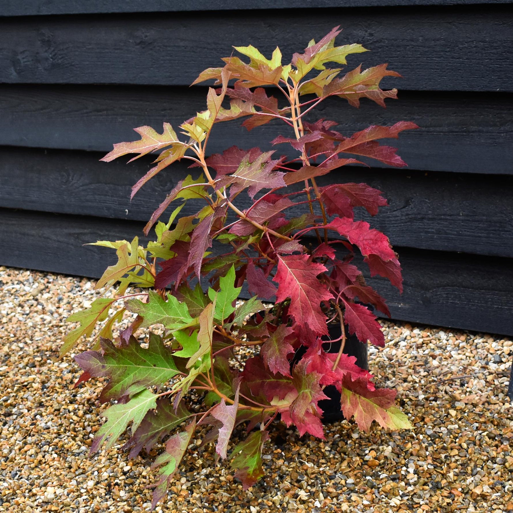 Hydrangea quercifolia 'Ice Crystal', commonly known as the Oakleaf Hydrangea, is a captivating deciduous shrub prized for its distinctive foliage and striking floral displays. This variety is renowned for its deeply lobed, oak-like leaves that transform into a rich tapestry of colours through the seasons. In spring and summer, the leaves are a vibrant green, providing a lush backdrop to the plant's main attraction – its flowers.