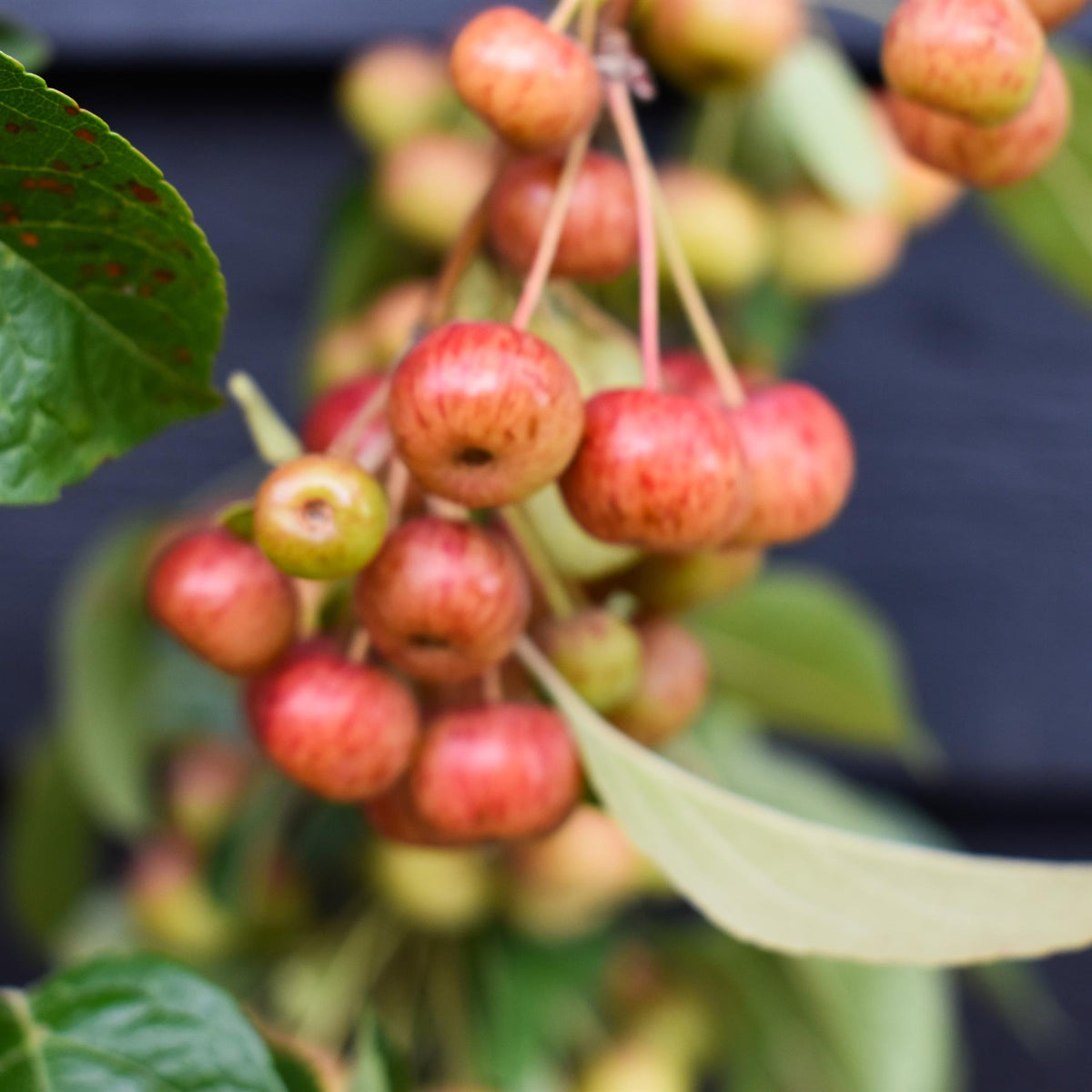 Malus 'Evereste' is an upright, deciduous tree with broad-pyramidal, half-open crown, and slightly lobed, dark green leaves, yellow and orange in autumn. Masses of large, pure white flowers open from scarlet buds and bloom in spring. Flowers are followed by the abundance of orange-red fruits that remain hanging on bare branches in winter. Attractive to bees and birds. Malus 'Evereste' can adapt to a wide range of soils, but prefers moderately fertile, medium moisture, well-drained soils. It thrives in full sun, but tolerates partial shade. Once established, it is resistant to drought. It can withstand frost and wind. Very resistant to urban pollution. Generally, disease-free. Low maintenance plant, doesn’t require much pruning. Malus 'Evereste', with its attractive foliage, profusion of lovely, white flowers and orange-red fruits, is a very decorative tree all year round. Perfect as a specimen or accent plant for informal, cottage, and urban gardens. Suitable for growing in containers and patio and roof gardens.