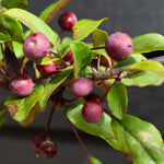 Malus ‘Profusion’, or Crab Apple ‘Profusion’, is an upright, spreading, deciduous tree with rounded to ovoid, half-open crown, and attractive, colourful foliage – reddish-purple when young, bronze-green during the season, and amber, orange, and red in autumn. Profusion of beautiful, fragrant, pink-rose flowers emerge in clusters in spring and are followed by blood-red fruits in autumn that persist into winter. Attractive to birds and bees. Crab Apple ‘Profusion’ can adapt to a wide range of soils, but prefers moderately fertile, medium moisture, well-drained soils. It thrives in full sun, but tolerates partial shade. Once established, it is resistant to drought. It can withstand frost, wind, and urban pollution. Generally, disease-free. Low maintenance plant. Malus ‘Profusion’, with its attractive foliage, profusion of bold, pink flowers and blood red fruits, is a very decorative tree all year round. Perfect as a specimen or accent plant for informal, cottage, and urban gardens. Suitable for growing in containers