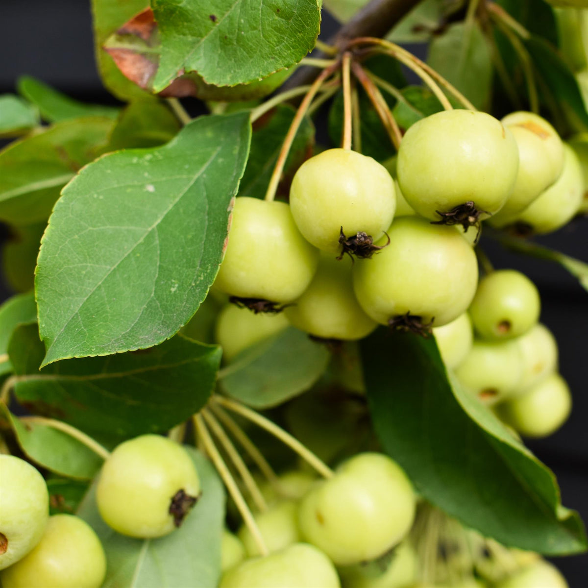 Malus ‘Red Sentinel’ is a small, deciduous tree with a rounded crown, medium-green leaves, yellow-bronze in autumn, and a profusion of fragrant, white flowers opening from dark pink buds in late spring. Clusters of cherry-like, glossy, deep-red fruits ripe in autumn and hang from bare branches in winter. Fruits are suitable for making jams and jellies. Attractive to birds and bees. Crab Apple 'Red Sentinel' can grow well in a wide range of soils, but prefers moderately fertile, medium moisture, well-drained soils. It thrives in full sun, but tolerates partial shade. Once established, it is resistant to drought. It can withstand frost, wind, and urban pollution. Self-pollinating plant that can be a pollinator for other plants. Resistant to scab. Malus ‘Red Sentinel’, with its lovely white flowers and attractive red fruits, is one of the most ornamental of crab apple varieties. Great as a specimen plant in small informal, cottage, or urban gardens. Suitable for culinary use.
