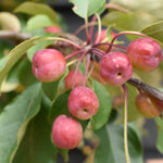 One of the most distinctive features of the Malus ‘Rudolph’ is its stunning display of deep pink to rose-red blossoms in late spring, typically appearing in May. These fragrant flowers, which emerge in clusters, are particularly attractive to pollinators, including bees. The flowers are followed by small, bright red to orange crabapples that add further interest to the tree in late summer and autumn. While these fruits are not commonly eaten raw due to their tartness, they can be used in making jellies or left on the tree for birds and other wildlife to enjoy.