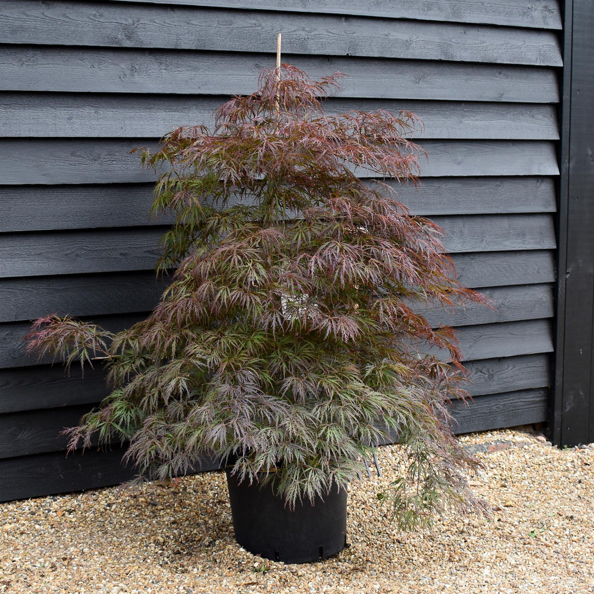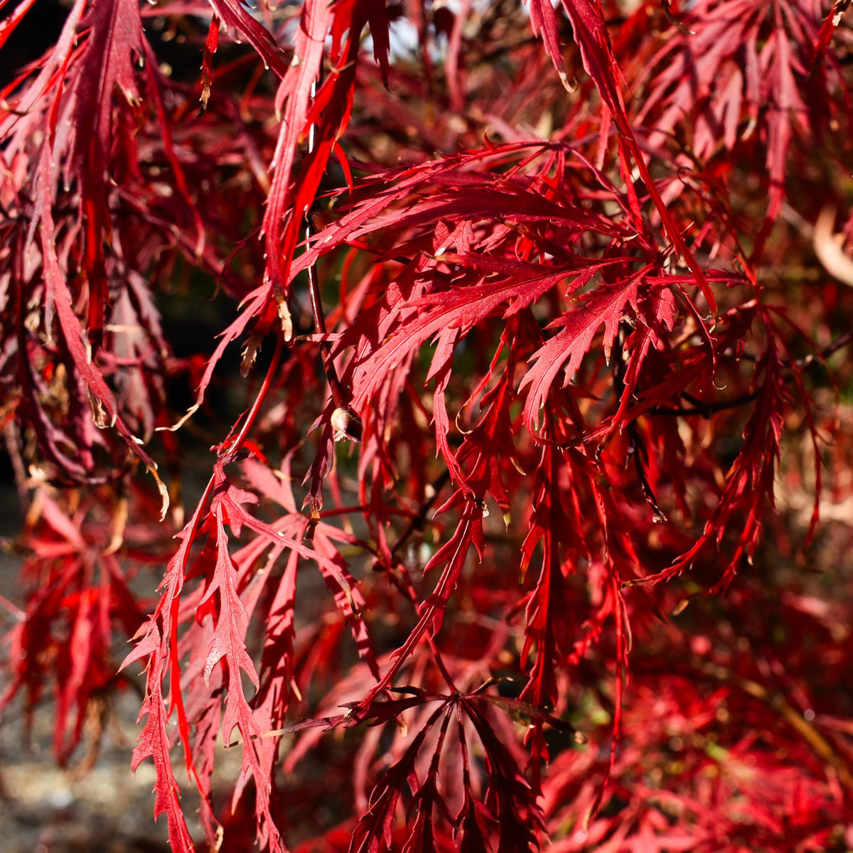 The Acer palmatum 'Garnet', commonly known as the Japanese Maple 'Garnet', is a captivating and popular deciduous tree renowned for its stunning foliage. This small, graceful tree features deeply dissected leaves with a delicate, lacy appearance, emerging as vibrant crimson-red in the spring. Throughout the summer, the foliage maintains its rich garnet hue, providing a striking contrast against the greenery of other plants. In autumn, the leaves transition to a brilliant scarlet, adding a spectacular splash of color to the landscape.