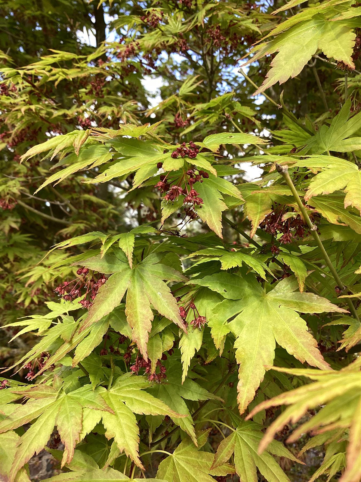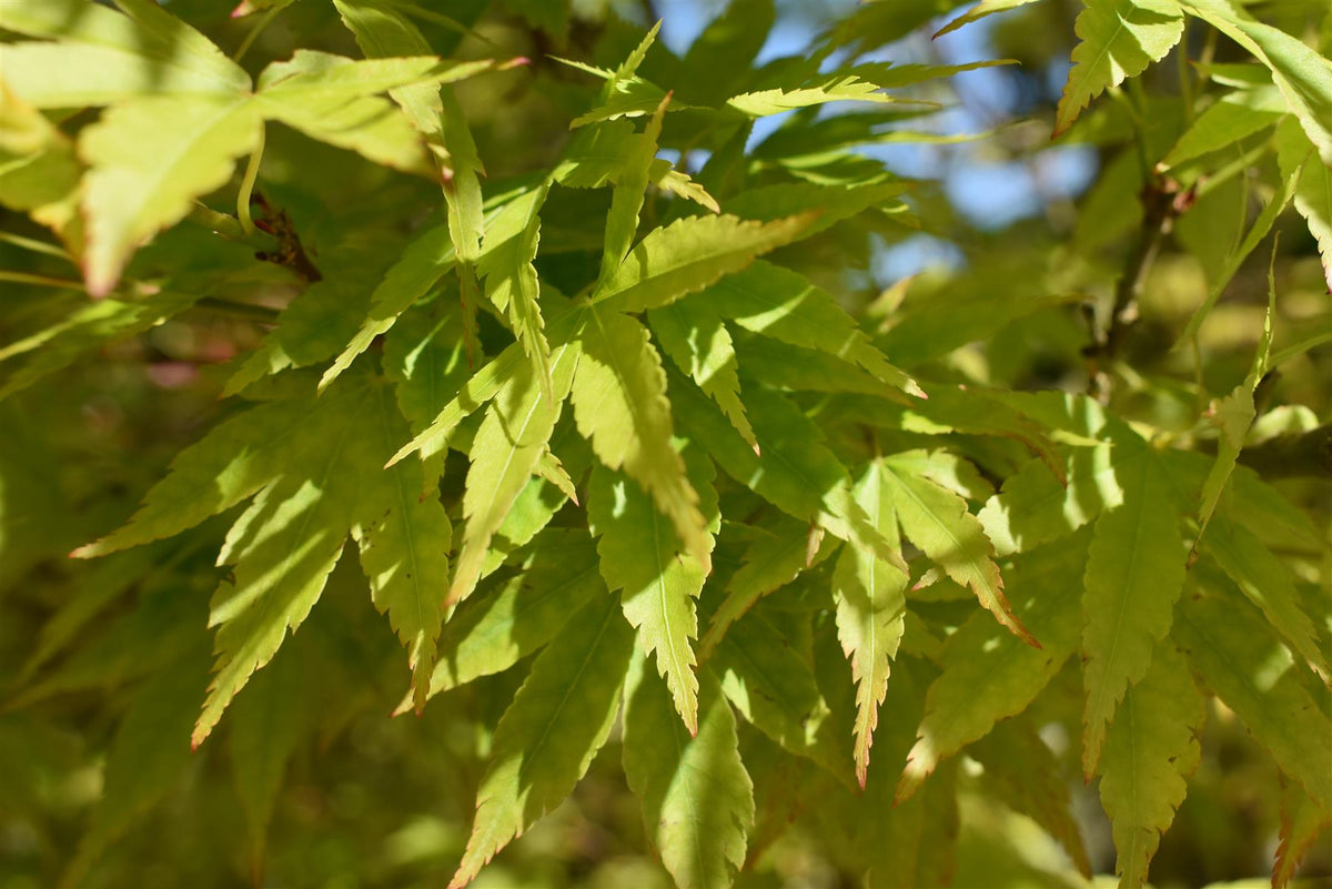 The leaves of the 'Orangeola' Japanese maple are deeply lobed, giving them a delicate and lacy appearance. They are also finely serrated and have a glossy finish, which adds to their ornamental value. The tree can grow up to 10 feet tall and 8 feet wide over time, making it an excellent choice for small gardens or as a specimen tree.