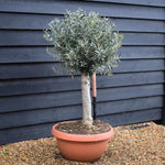 Our standard olive trees with a straight stem, reaching approximately 3.5 meters in height, offers a striking focal point for any garden. With a clear stem of 165 cm, it provides an elegant, structured appearance, making it ideal for formal and contemporary landscapes. Its silvery-green, evergreen foliage adds year-round interest, while the dense canopy provides light shade. This variety thrives in well-drained soil and full sun, making it perfect for Mediterranean-style gardens, patios, or as a specimen tree. Drought-tolerant once established, it requires minimal maintenance and occasional pruning to maintain shape. Suitable for pots or open ground, it brings timeless beauty and structure, enhancing any outdoor space with character.