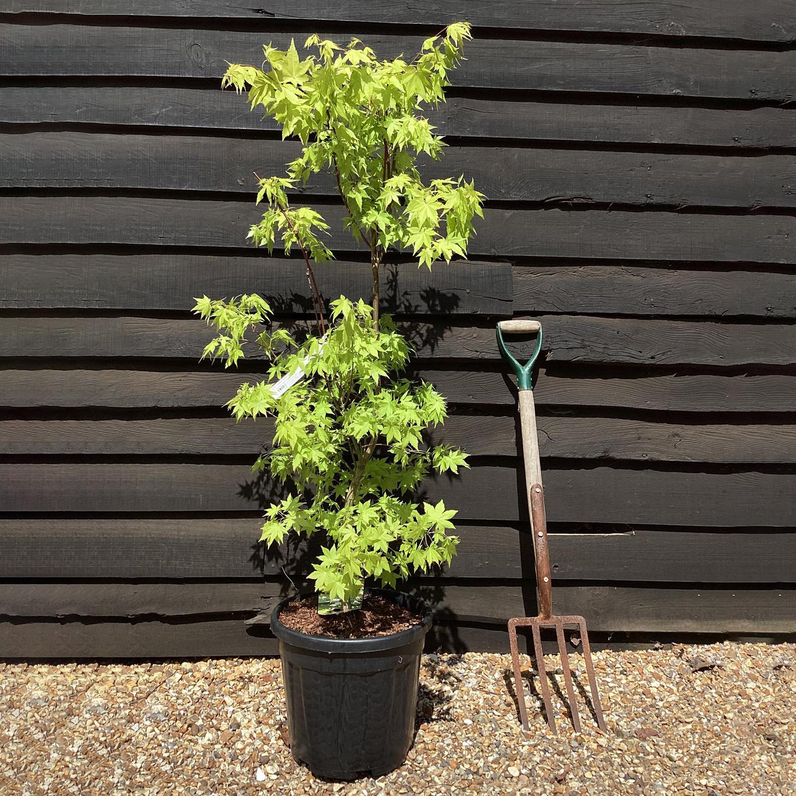 Acer palmatum 'Summer Gold' is a stunning cultivar of Japanese maple that is highly sought after for its unique golden-yellow foliage. This deciduous tree typically grows to a height of about 1.5 meters and has a bushy, rounded habit, making it an excellent choice for smaller gardens or patio containers.