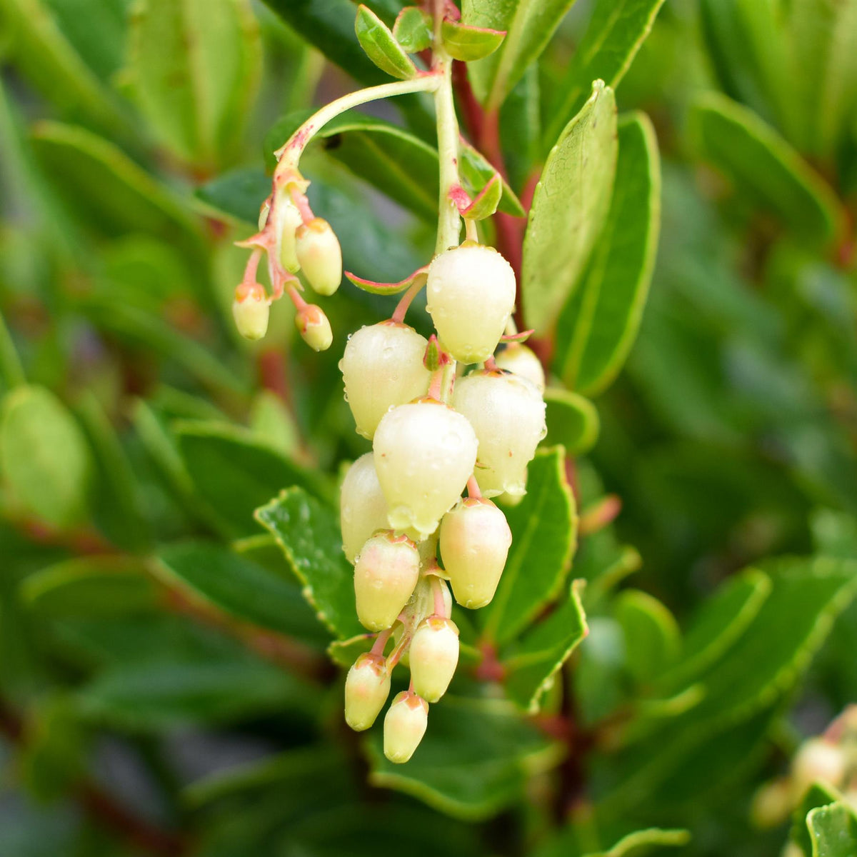 Arbutus unedo is an evergreen, ornamental, multi-stem, capriciously growing shrub or small tree with glossy, leathery, mid-green foliage. It is very unusual and stunning all year round. Clusters of fragrant, bell-shaped, white flowers bloom from autumn to mid-winter. Round, yellow fruits appear in winter and slowly become ripe in the next 12 months, gradually turning red. They are still on the tree when new flowers show up in autumn. A grey-brown bark peels, revealing cinnamon-coloured inner bark. It can grow in all kinds of soils and climate conditions, but prefers acidic, moist and well-drained soil, in full sun or partial shade. It is tolerant to drought, disease-free and pest-free. Very resilient. This unusual, colourful and very attractive plant is perfect as a specimen plant, great for shrub borders, hedges, coastal gardens, and for growing in containers.