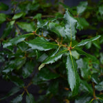 Quercus ilex, or Holm Oak, is a large, evergreen tree, with fissured, black bark, and massive, dense, rounded crown. Leathery, glossy dark green leaves, grey and hairy underneath, resemble holly leaves when young, and become smooth-edged when mature. Small, inconspicuous, yellowish green flowers grow in small clusters if female, and in dangling catkins if male and are followed by small acorns. Holm Oak grows best in rich, loamy, moist, well-drained soil. It thrives in full sun to partial shade. Once established, it is resistant to drought. Tolerant of salt-spray and suitable for coastal areas. Resistant to urban pollution. Mediterranean climate plant, it may suffer in severe winters. Virtually disease-free. Low maintenance plant, doesn’t require pruning. Quercus ilex is an exceptional evergreen tree, perfect as a specimen plant or a shade tree in large gardens. Great for hedges and screens. Often planted as a windbreak in coastal areas. Excellent for streets and parks in urban and industrial areas.