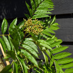 Sorbus aucuparia ‘Autumn Spire’ is a small, vigorous, deciduous tree of columnar habit with pinnate, bright green leaves, yellow, red, and purple in autumn. Small, creamy-white flowers bloom in spring and are followed by masses of yellow berries with reddish centres in summer and autumn. Attractive to birds and bees. Mountain Ash ‘Autumn Spire’ grows best in moderately fertile, humus-rich, slightly acidic, moist, well-drained soils, but is adaptable to various soil conditions, except too wet and waterlogged. It thrives in full sun to partial shade. It is resistant to frost and wind. Very easy to grow, tolerant of urban pollution, coastal conditions, and exposed areas. Sorbus aucuparia ‘Autumn Spire’ is a wonderful and tough ornamental tree with stunning autumn foliage and profuse flowering. Perfect as a specimen or accent plant in cottage, urban, wildlife, and coastal gardens. Great for informal hedges and screens. Excellent for streets and avenues. Suitable for growing in containers on patios and roof gardens.