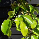 Pyrus communis 'Beurre Hardy' is a vigorous, upright, pyramidal, deciduous tree with ovate, glossy, dark green leaves and profusion of creamy-white flowers in early spring. It bears moderate, regular crops of large, tasty, red-flushed, greenish-yellow pears ready for harvesting in October. The fruit has excellent flavour and pleasantly melting flesh. Pyrus communis 'Beurre Hardy' can grow in a wide range of soils, except damp or filled with stones. It thrives in fertile, neutral, moist, well-drained soils. It prefers sunny, sheltered positions and the fruit is best when grown in full sun. It is extremely resistant to frost but since it is a very early bloomer, flower buds may be damaged by late frosts. It can withstand wind. It is self-sterile and needs to be grown with a pollination partner. Pear 'Doyenné du Comice' is primarily grown for its sweet and delicious fruit, but beautiful, white flowers make it a great ornamental tree. Ideal for small informal, cottage, and wildlife gardens.