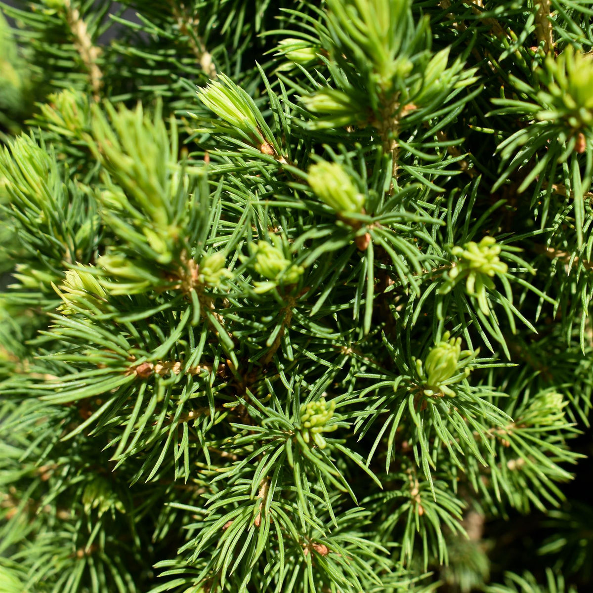 The needles of the Picea glauca ‘Perfecta’ are soft to the touch, bluish-green in colour, and create a shimmering effect in sunlight, adding a striking element to the garden landscape. Its branches are short and evenly spaced, enhancing the tree's symmetrical, pyramid-like appearance.