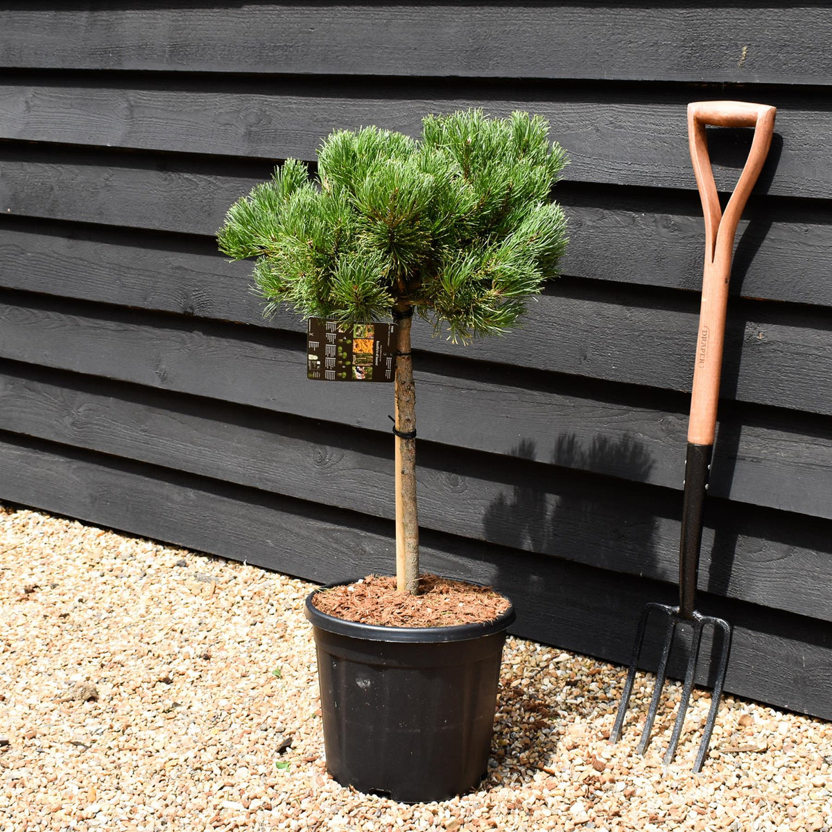 Pinus mugo ‘Carsten’s Wintergold’ on a clear stem is an outstanding choice for adding compact evergreen structure and seasonal color to a garden. This dwarf mugo pine has been grown with a clear stem, creating a lollipop-like form perfect for small spaces, raised beds, containers, or as a standout feature in rock or alpine gardens. In summer, its short, dense needles are a vibrant green, but as temperatures drop in autumn, they gradually transform into a brilliant golden-yellow, providing exceptional winter interest.