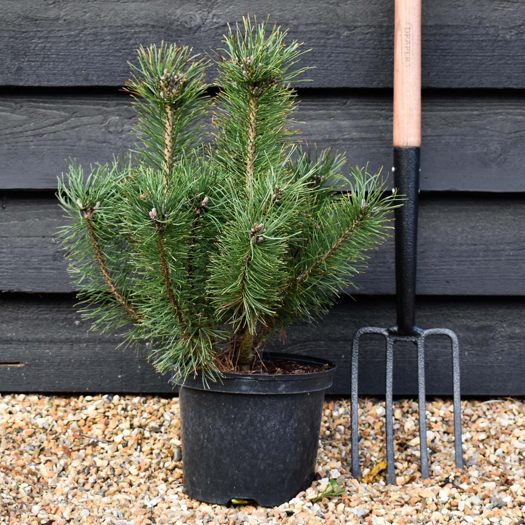 Pinus mugo subsp. mughus, commonly known as dwarf mountain pine or creeping pine, is a low-growing, evergreen conifer native to the mountainous regions of central and southern Europe. This subspecies of Pinus mugo is characterised by its compact, shrubby form, often spreading horizontally rather than growing upright. It is a popular choice in rock gardens, alpine gardens, and as ground cover due to its resilience and attractive appearance.