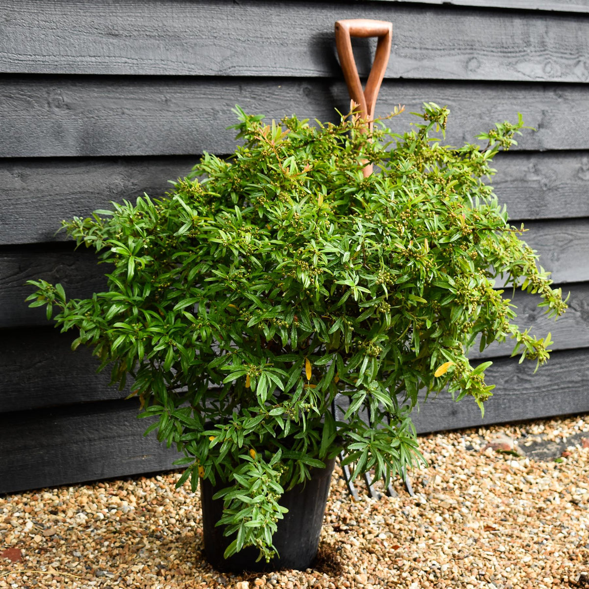 Pyracantha teton, commonly known as Teton Firethorn, is a versatile and striking evergreen shrub that belongs to the Rosaceae family. Originating from Asia, particularly China and Japan, it has found popularity in gardens across the United Kingdom for its ornamental appeal and resilience in various conditions.