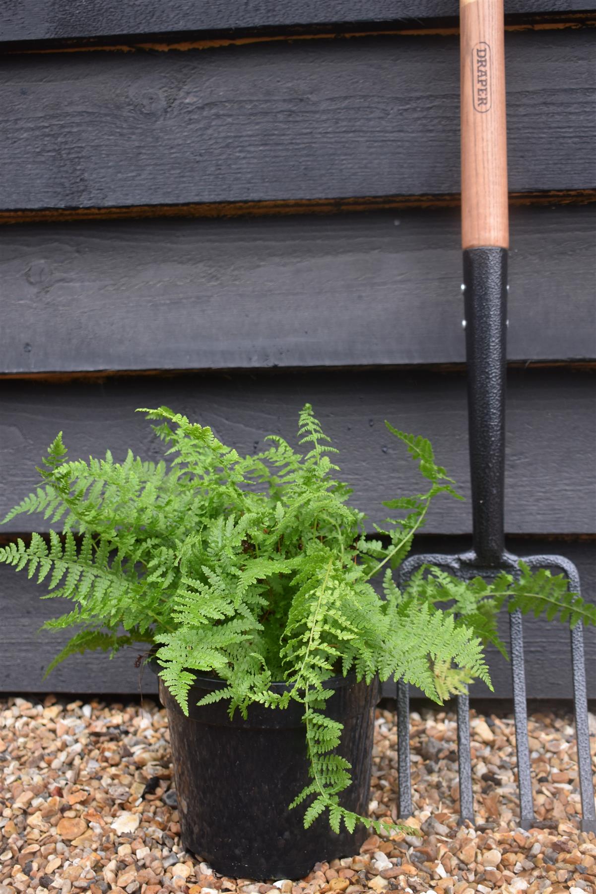 This fern prefers moist, well-drained soil and thrives in shady to partially shaded locations, making it an ideal choice for woodland gardens, shaded borders, or alongside water features. It is relatively low-maintenance, requiring only regular watering to keep the soil consistently moist. While it can tolerate brief periods of drought once established, prolonged dry spells should be avoided to prevent stress and maintain the plant’s vigour.