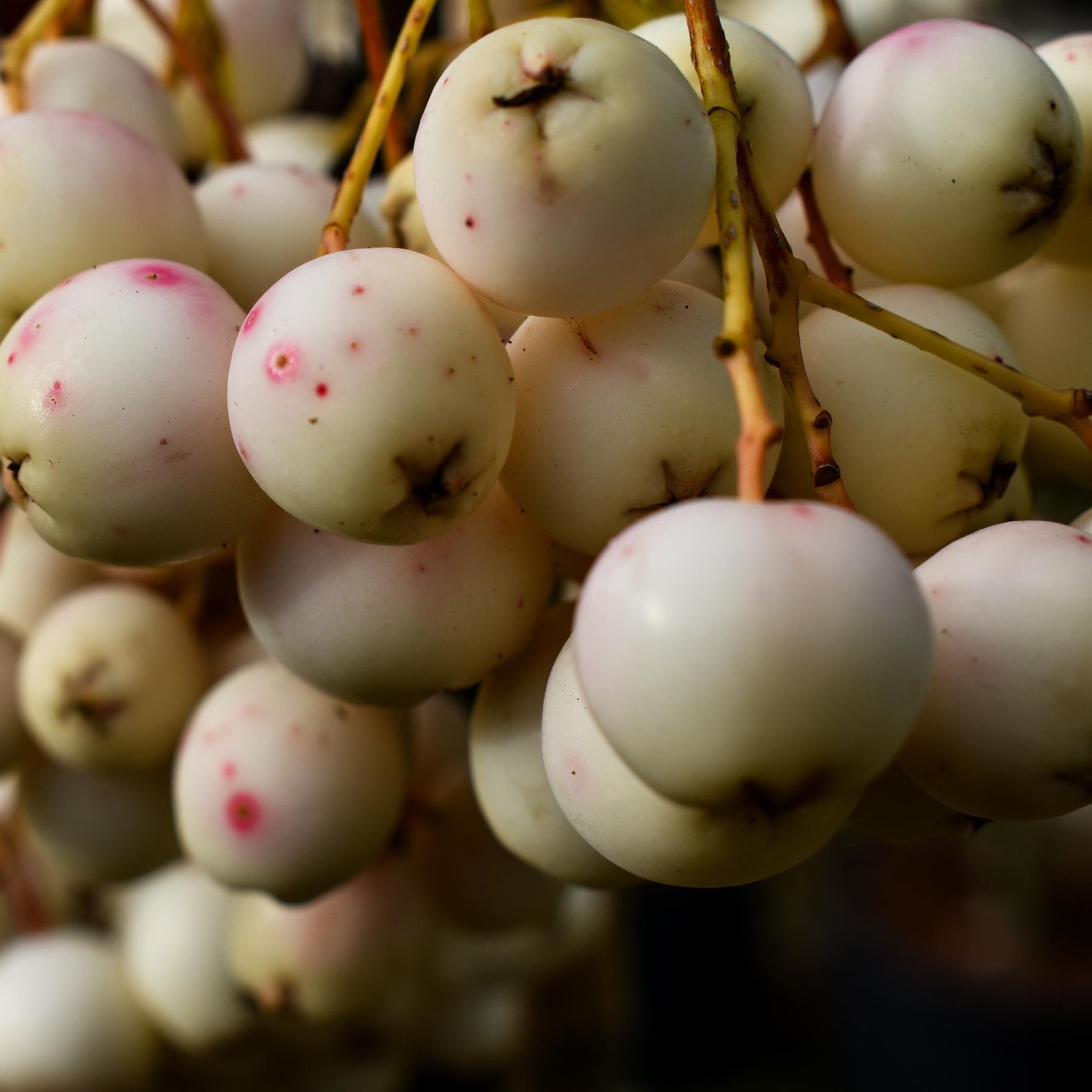Sorbus cashmiriana is a small, spreading, deciduous tree of rounded to broadly spreading habit, with mid-green leaves with many elliptic leaflets, yellow-orange in autumn. Clusters of pale pink flowers bloom in spring and are followed by pearl-like, glossy, white berries in autumn, persisting on bare branches long into winter. Attractive to bees. Kashmir Rowan grows well in clay, loamy, and sandy soils and prefers moderately fertile, humus-rich, slightly acidic, moist, well-drained soils. It thrives in full sun to partial shade. It is resistant to frost and tolerant of wind, exposed sites and urban pollution. Low maintenance plant, doesn’t require pruning. Unfortunately, it is short lived. Sorbus cashmiriana, with its autumn foliage and lovely, large, white berries, is a tough and attractive ornamental tree. Perfect as a specimen plant in smaller, cottage, urban or coastal gardens. Excellent as a street tree. Suitable for growing in containers on patios and rood gardens.