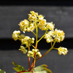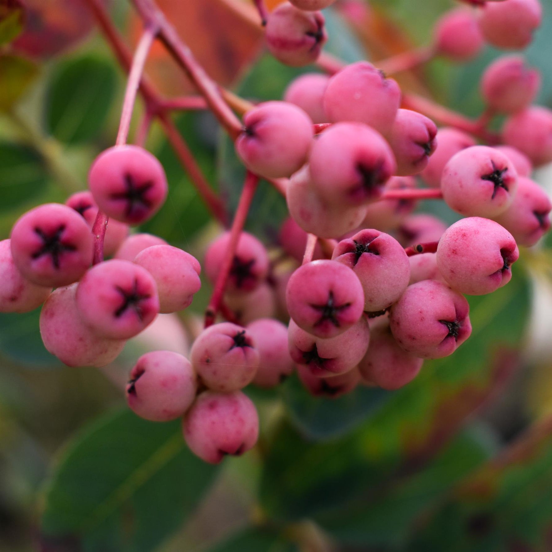 Sorbus pseudohupehensis 'Pink Pagoda’ is a compact, medium-sized, deciduous tree of columnar habit, with pinnate, blue-green leaves, vivid red in autumn. Profusion of tiny, creamy-white flowers bloom in spring and are followed by bright pink berries in autumn, persisting on bare branches throughout winter. Chinese Mountain Ash ‘Pink Pagoda’ thrives in moderately fertile, humus-rich, slightly acidic, moist, well-drained soils, but can adapt to a wide range of soil types. Once established, tolerant of drought. It is resistant to frost and wind, and tolerant of exposed conditions, coastal conditions, and air pollution. Low maintenance plant, doesn’t require regular pruning. Sorbus pseudohupehensis 'Pink Pagoda’ is a lovely and tough ornamental tree perfect as a specimen plant in small informal, cottage, coastal, and urban gardens. Great for beds and borders, as well as informal hedges and screens. Excellent as a street tree. Suitable for growing in containers on patios or roof gardens.