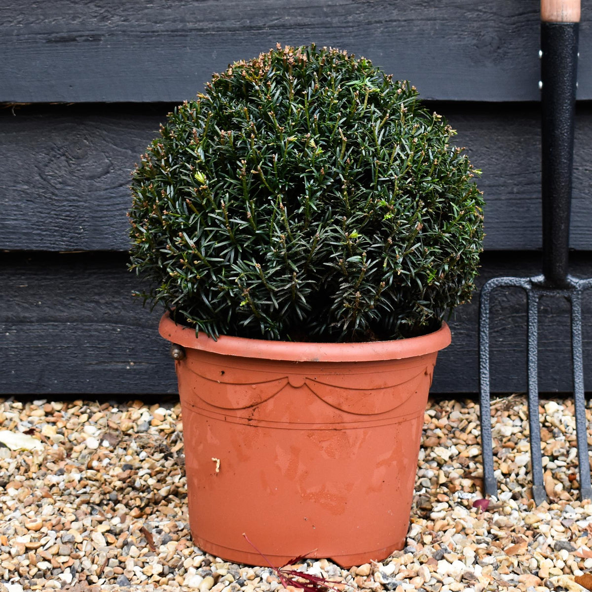 Highly durable and long-lived, the yew ball is also resilient to cold and pollution, making it a reliable, low-maintenance choice for adding evergreen structure and elegance to any outdoor space.