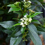 Viburnum tinus ‘Eve Price’ is a tough, beautiful, winter-flowering plant, great for cottage, urban, and coastal gardens. Excellent for brightening shady garden corners or bare winter gardens. Perfect for shrub borders, informal hedges and screens, and foundation plantings. Good as a specimen or accent plant.